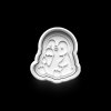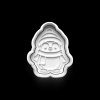 Vykrajovátka jsou dvoudílná pro efektivnější vyřezávání a skládá se z okraje a tiskového razítka. Pro nejlepší výsledky otiskněte razítko, přiložte na něj okraj a vyřežte tvar.